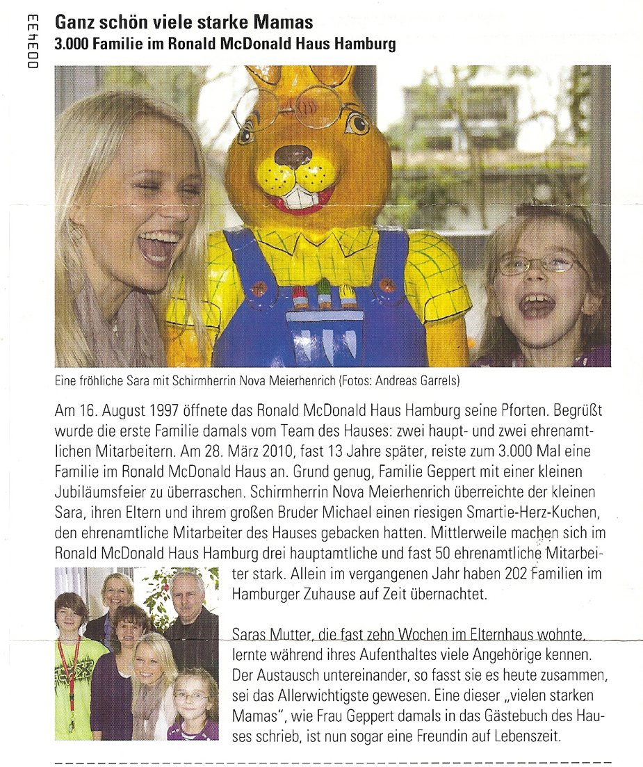 Helping Hands – 01/2010 – "3000. Familie im Ronald McDonald Haus Hamburg"