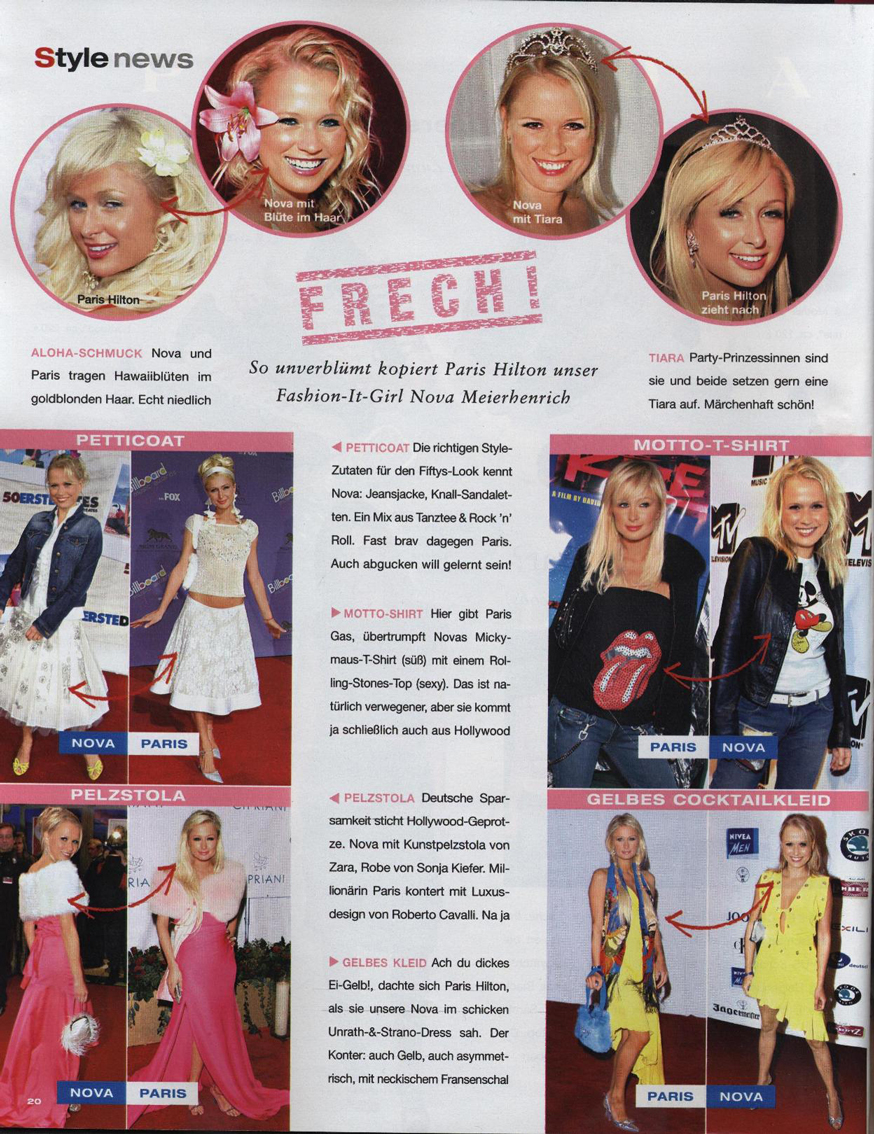 1. April 2005 InStyle – 04/2005 – "Frech: So unverblümt kopiert Paris Hilton unser Fashion-IT-Girl Nova Meierhenrich"