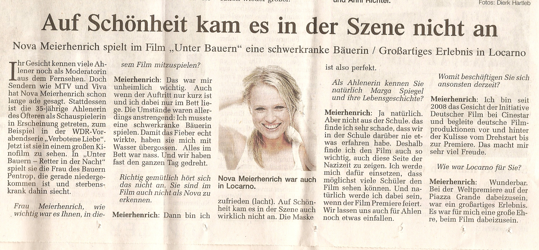 Ahlener Volkszeitung – 10.8.2009 – "Auf Schönheit kam es in der Szene nicht an"